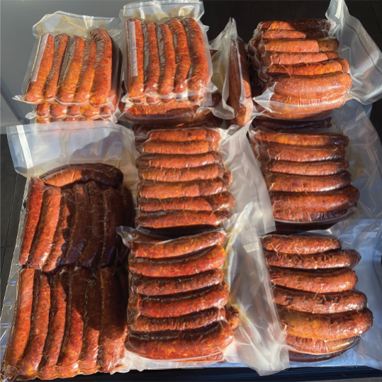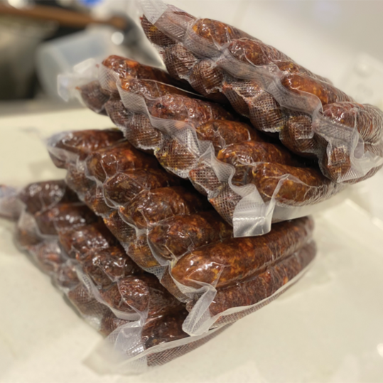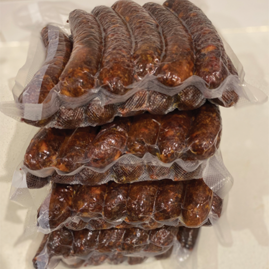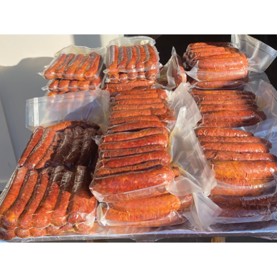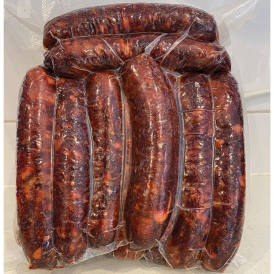 Our smoked beef sausages are crafted from tender cuts of quality beef, enhanced with 20% pork fat to deliver juicy texture and rich flavor. Naturally smoked over hardwood, they are fully cooked and ready to reheat. These are perfect for BBQs, breakfast platters, or quick meals.
