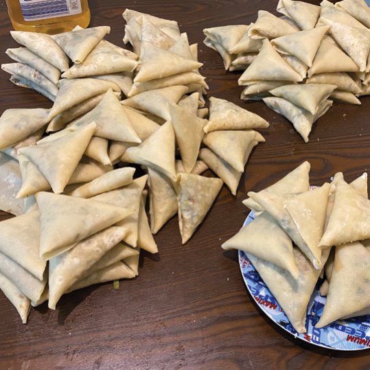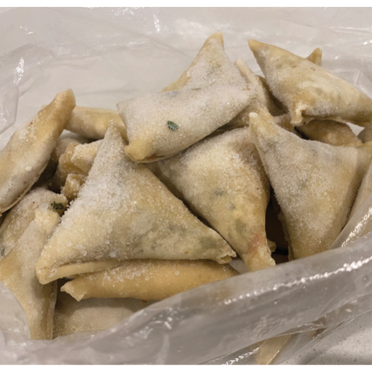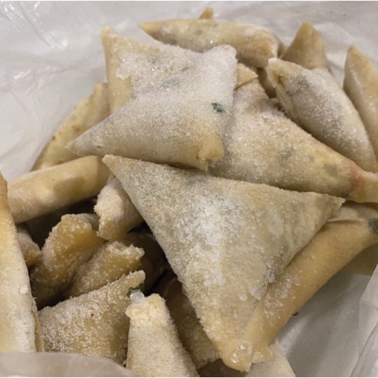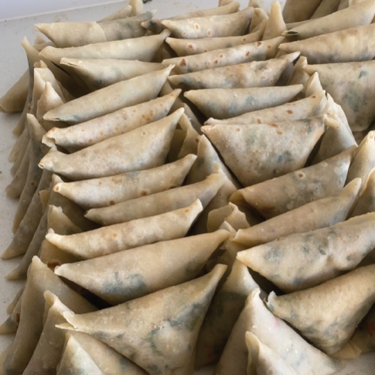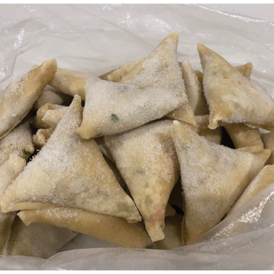 Raw sambusa filled with seasoned minced beef, onion, and herbs — a savory favorite ready to be fried fresh at home.